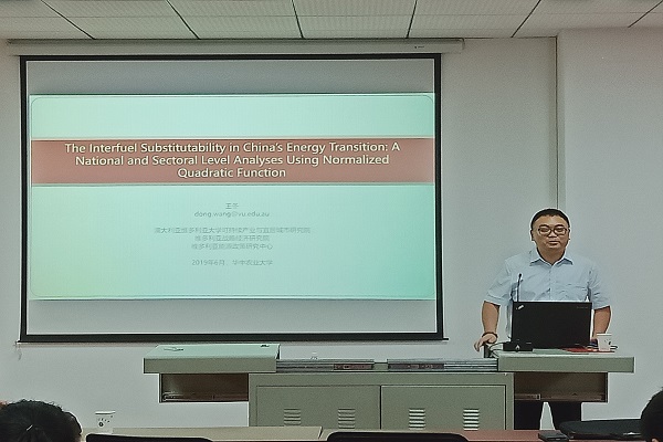 6月12日,维多利亚大学研究员王冬受邀作客我校公共管理论坛,在人文楼M221为学院师生带来题为“The Interfuel Substitutability in China’s Energy Transition: A National and Sectoral Level Analyses Using Normalized Quadratic Function”的报告,报告会由英国365上市集团董捷教授主持。