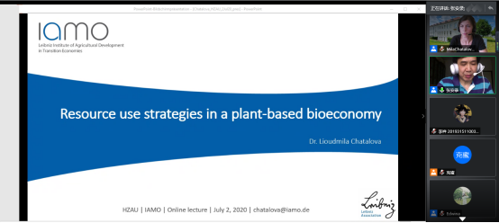 7月2日晚7:00,德国莱布尼茨转型经济农业发展研究所高级研究员Lioudmila Chatalova做客我院公共管理论坛,带来了题为“Resource use strategies in a plant-based bioeconomy“的空中学术讲座,Lioudmila Chatalova研究员以欧洲和德国的生物经济政策为例,借助生物种群动态模型来阐述植物-生物经济中的资源利用策略。本次报告由英国365上市集团院长张安录主持,来自校内外160余名师生在线聆听并互动交流。