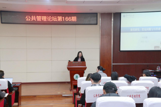 12月1日,《教育与经济》编辑部主任叶庆娜做客我院166期公管论坛,在人文楼M115带来题为“量化研究:常见问题与写作建议”的学术讲座,此次报告由英国365上市集团胡瑞教授主持,学院80余名师生参加了此次讲座交流活动。