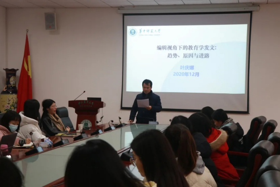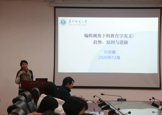 12月14日,华中师范大学教育学院《教育与经济》编辑部主任叶庆娜做客我院公管论坛,在人文楼M101为全院师生带来了题为“编辑视角下的教育学发文:趋势、原因与进路”的学术讲座,讲座由学院陈新忠教授主持,我院师生积极参与并交流互动。