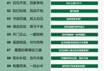 如何在国际高水平期刊上发表论文?聂教授总结自己数十年科研经验,以国际高水平期刊的特点为切入点,将论文写作的全周期分为9个方面,包括如何阅读文献、如何选题与研究设计、如何破题与写题目、论文的要点结构及行文逻辑等。