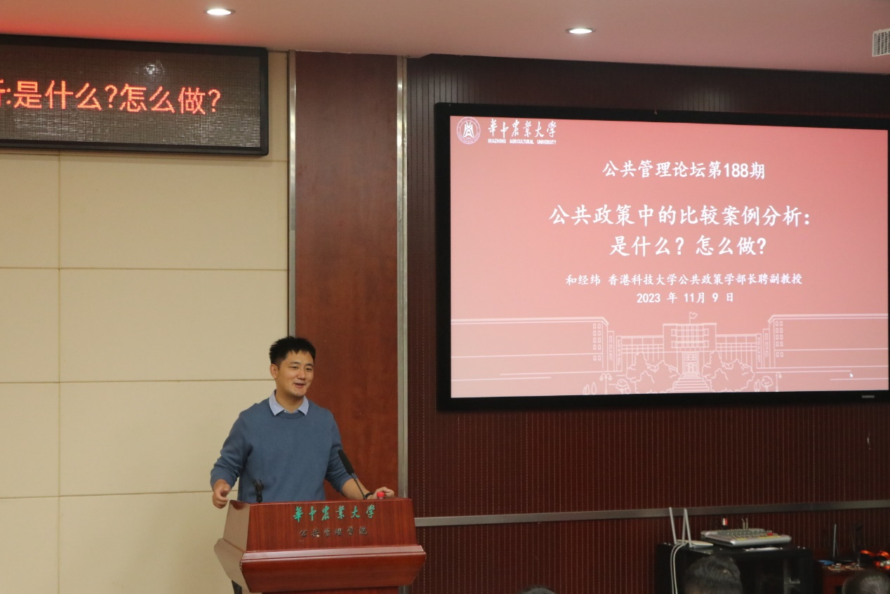 11月9日14:30,第188期公共管理论坛在人文楼M115举行,本次论坛邀请到了香港科技大学公共政策学部长聘副教授、公共政策研究院署理主任和经纬老师,以“公共政策中的比较案例分析:是什么?怎么做?”为主题进行分享。我院副教授姜庆志老师担任主持人,吸引百余名师生参加。