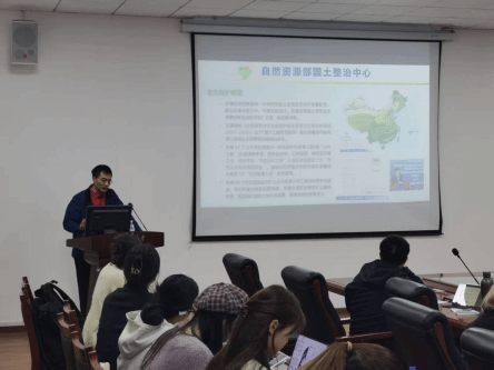 王军教授首先向同学们介绍了自然资源部国土整治中心的主要职责和自然资源部土地整治重点实验室的建设与发展。自然资源部土地整治重点实验室作为NbS亚洲中心依托单位,聚焦三大研究方向:土地生态系统过程与效应、损毁土地生态修复与绿色利用技术、区域生态修复与调控技术,构建了“管理制度科学化-人才梯队专业化-科研产出精品化”的创新体系。实验室支撑编制《全国重要生态系统保护和修复重大工程总体规划(2021-2035年)》,推动52个“山水工程”纳入联合国生态恢复旗舰项目,为全球生态修复提供“中国方案”。