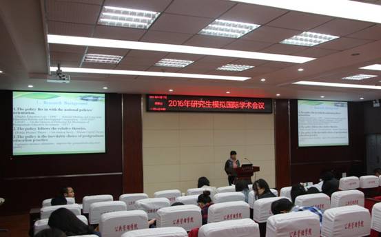 4月17日上午10点,由英国365上市集团、经济管理学院、马克思主义学院、外国语学院与文法学院联合举办的2016年研究生模拟国际学术会议第五分会,在人文楼M115报告厅盛大举行。来自四个学院的七组选手,选取自己在学术研究中较为成熟的学术见解或学术论文,以全英文的形式给大家带来十分精彩的报告。本分会场的评委由各院的资深教师组成,他们根据自己多年的学术积累和授课经验,对选手们一一点评,并提出不少宝贵意见。会议吸引了各学院众多师生前来学习,现场气氛热烈。