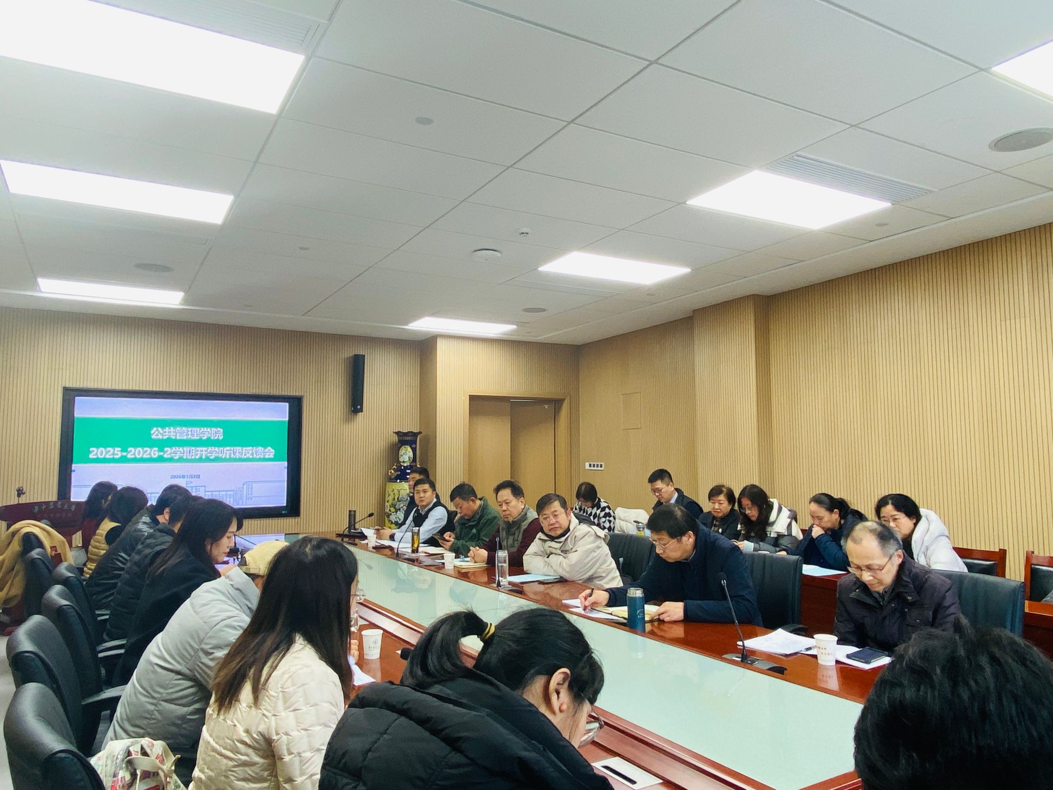 3月2日,学院组织开展2026年春季学期“开学第一课”听课交流活动。学校职能部门领导、学院领导班子成员、院教学指导委员会成员、各系主任、党支部书记、教学督导员及辅导员等三十余人深入本科课堂,随堂听“开学第一课”,并于当天下午召开专题交流会。会议由学院副院长汪文雄主持。