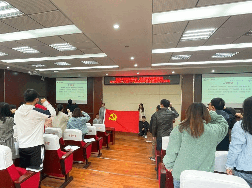 会议伊始,本科生党员代表齐逸飞同志带领与会成员重温入党誓词。