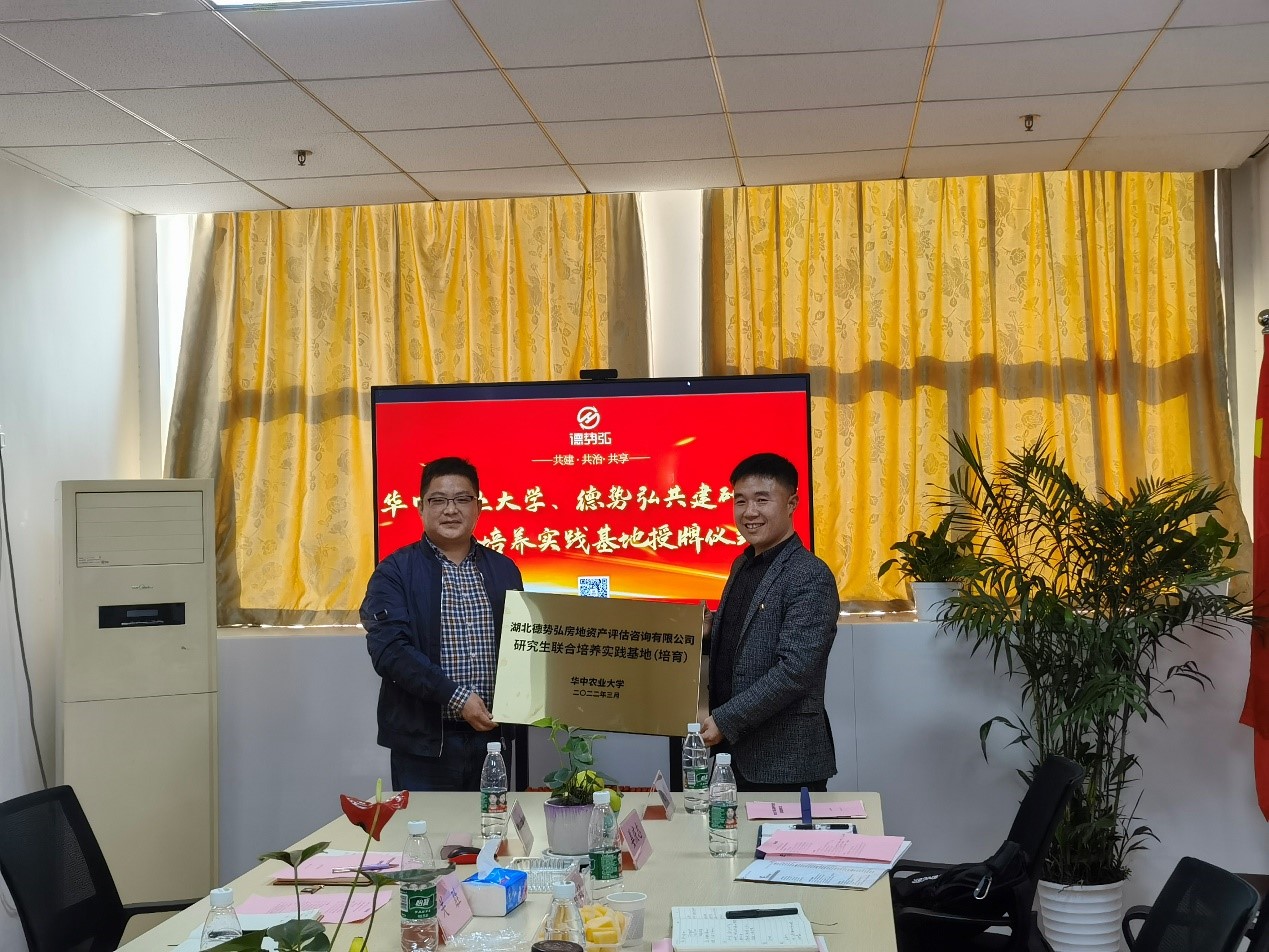 4月8日英国365上市集团与湖北德势弘房地资产评估咨询有限公司举行研究生联合培养实践基地(培育)揭牌仪式。英国365上市集团院长柯新利教授、研究生导师代表杨钢桥教授、姜庆志副教授、杨帆老师,德势弘总裁关胜、农业咨询和空间规划事业部总经理刘洋、自然事务部总经理张为义、规划设计部总经理陈飞以及公司其他职能部门负责人出席了揭牌仪式。