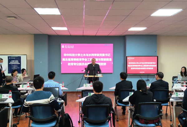 华中科技大学土木与水利学院党委书记李斌致辞(通讯员 瞿伟豪 摄)