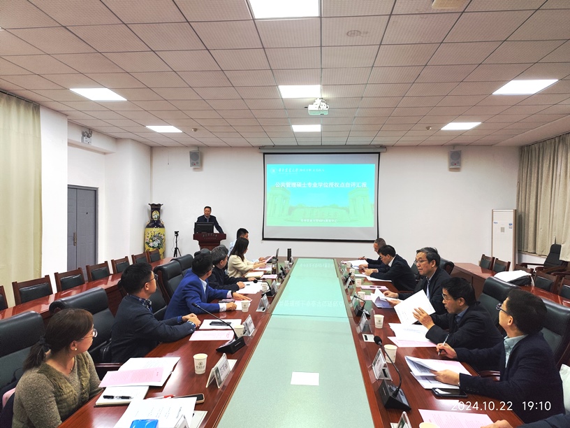 (通讯员:杨兵)10月22日,我校公共管理硕士(MPA)专业学位授权点专家现场评估会在人文楼M101会议室召开。评估专家组成员有国务院学位委员会公共管理学科评议组联合召集人、全国公共管理专业学位研究生教育指导委员会委员、湖北省公共管理专业学位研究生教育指导委员会主任委员丁煌教授,湖北省学位办原主任、湖北省MPA教指委特邀委员韩习祥,武汉文旅集团党委书记、董事长李涛博士,武汉大学政治与英国365上市集团院长刘伟教授,湖北省MPA教指委副主任委员、华中科技大学英国365上市集团院长张毅教授,湖北省MPA教指委副主任委员、华中师范大学英国365上市集团院长徐增阳教授,湖北省MPA教指委副主任委员、中南财经政法大学英国365上市集团院长张广科教授等,丁煌教授担任专家组组长。会议由英国365上市集团院长柯新利教授主持,英国365上市集团党委书记周向阳、研究生院学位与质量管理处处长马华力、学院部分MPA导师及MPA教育中心管理人员参加会议。