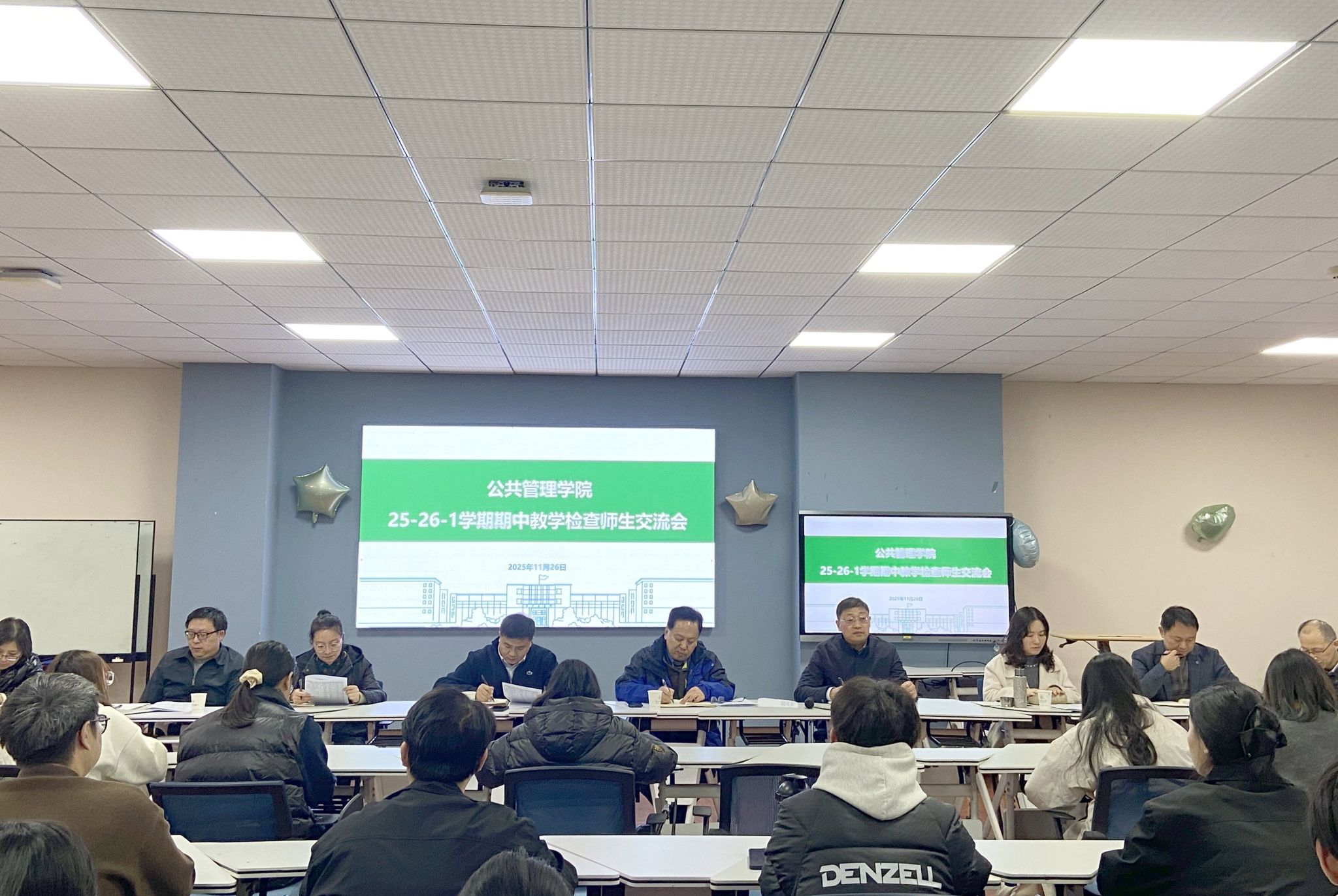 11月26日下午,学院在人文楼M221举行期中教学检查师生交流会。本科生院思想政治教育管理处处长周雷、学院副院长汪文雄、副书记罗晓峰、教学督导员任宇华和陈中江、各系主任、支部书记、辅导员、教学秘书及各年级学生代表共同参会,围绕教、学、管、服四方面展开交流。