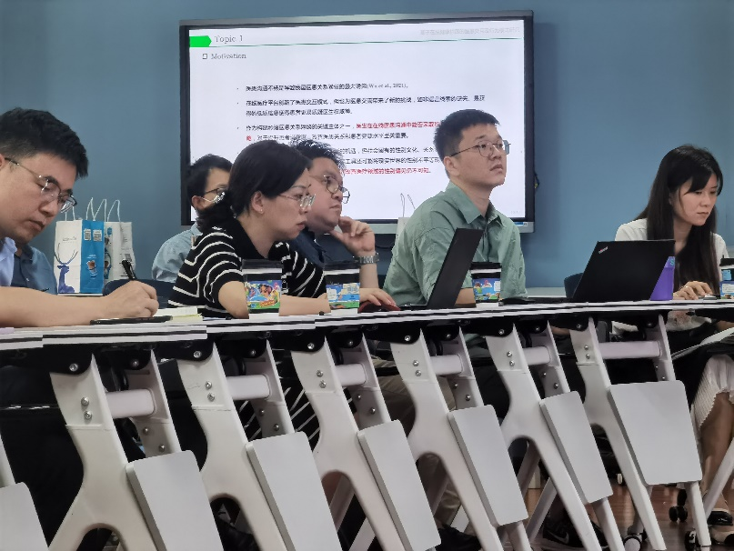 分享结束后,参会师生在研究问题选取、研究模型运用、研究指标合理性等方面展开了热烈讨论。主持人何利杰老师指出刘艳老师的研究以信息管理、大数据赋能公共健康服务,具备学科前瞻性与现实关照。胡银根教授对刘艳老师的三个平行研究设计表示认同与称赞,就多模态数据提出了自己的疑问。曾晨老师就解释变量指标的理论解释力同刘艳老师进行了交流。左成超老师、彭开丽老师和王家合老师等人分别发表了自己的感悟与见解。