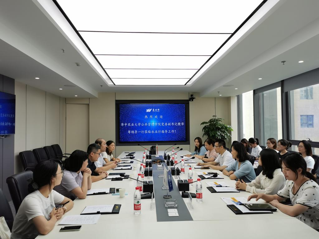 为进一步加深校企合作的深度与广度,了解18级学生暑期教学实习情况。7月26日下午,学院党委副书记樊华、副院长丁艳华、土管系系主任彭开丽、辅导员张薇实地走访湖北永业行进行座谈交流。永业行副总裁吴学锋、人力资源部总经理周云、不动产事业群常务副总经理郭华、自然资源事业群技术中心总经理刘亚玲以及校友代表参与了接待和交流。