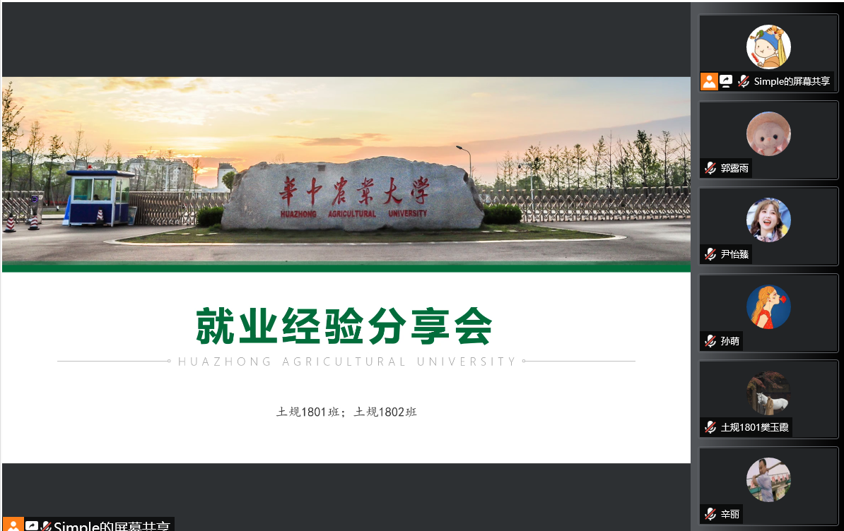 在土地资源管理专业的联合就业分享会中,几位通过秋招和春招找到工作的同学结合自己与身边同学的经验,给大家讲述了在求职中遇到的挫折和困难,分享了其就业策略,包括填写简历、网申、笔试、面试等技巧,为还在寻找工作的同学提供了指导。