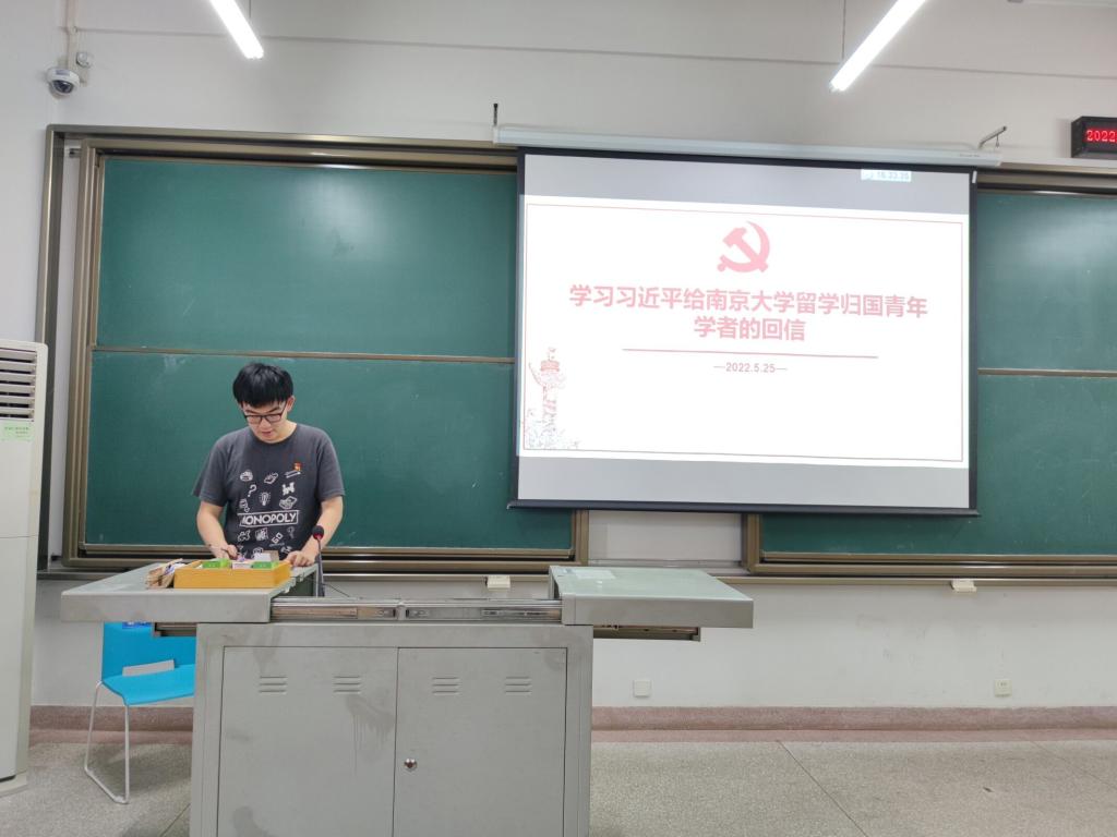 党员何乐天同志带领大家一起学习了《习近平给南京大学留学归国青年学者的回信》内容,他谈到:“回信内容充分体现了以习近平同志为核心的党中央对留学人员成长的关怀和对留学人员工作的重视。习近平总书记向归国留学人员回信寄语,是党中央坚持“聚天下英才而用之”和“营造识才爱才敬才用才的环境”的具体体现,是新时代人才强国、科技强国战略下,党和政府对归国留学人员重要作用的高度重视。”他认为:留学人员最基本的底色是爱国,最牢固的信念是报国,“报效国家、服务人民”是一代又一代留学人员的共同理想,也是留学人员工作者要把握的核心要义。在谈到对“在坚持立德树人、推动科技自立自强上再创佳绩,在坚定文化自信、讲好中国故事上争做表率”的理解上。何乐天表示在百年未有之大变局下,党中央对广大留学人员和留学人员工作者的新期望、新要求,体现了引导广大留学人员以民族复兴为己任,笃定“国之所需,吾之所向”的信念,也是智慧与力量播撒在民族复兴的奋斗征程上的重要体现。