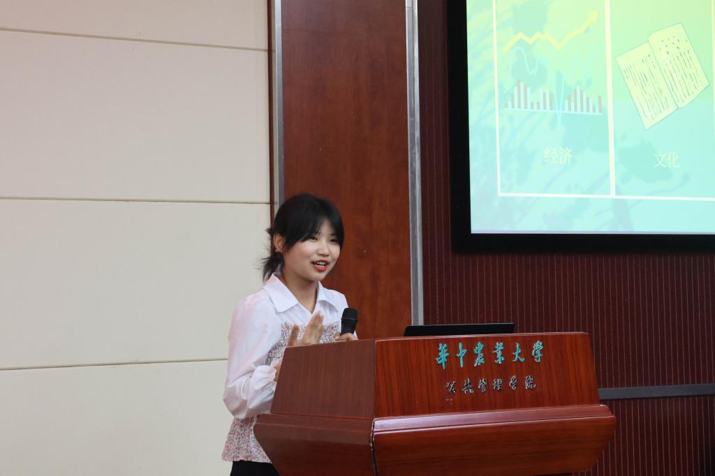 行管2102班苏珊珊深入挖掘了我校第一任党委书记童世光先生的事迹,展现了一位“一身正气、两袖清风、鞠躬尽瘁、死而后已”的榜样形象。童世光是党派到学校的第一任负责人,1952年院系调整时,他是学校的主要组建者;1954年他组织全校开展防汛斗争,战胜了洪水对学校的威胁;1955年他主持选定南湖狮子山为学校校址,带领师生开展艰苦的建院工作。“去做事关中国人吃饭这件比天都大的事情”,她分享了童世光在筹备组建学校建设时毅然回到华农、致力于为培养新中国的农业科技人才和推动农业发展时说的话,并号召同学们要向前辈学习,继续发扬团结一致、艰苦奋斗、勤俭建校的校风。