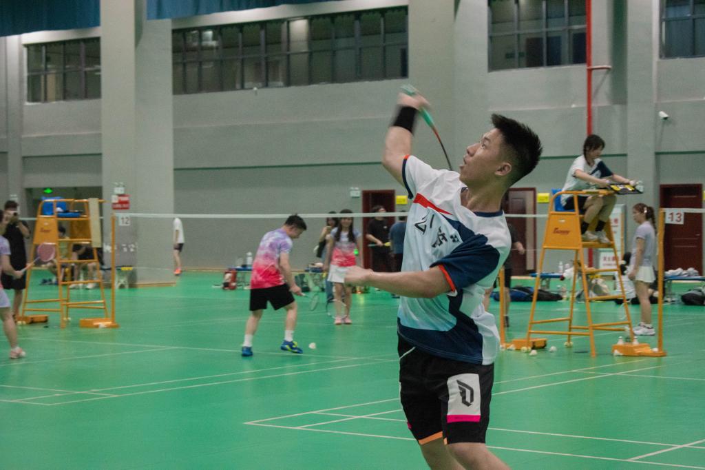 本次赛制采取分组循环和淘汰赛机制,获胜规则为胜场多的团体晋级,其中上半赛区尚德队、求是队积分前两名出线,下半赛区求新队战胜尚公队出线,出线的三支队伍分别对战,最终决出冠亚季军团体。小组赛中,周婷副教授、毕业生姚金玉同学对阵宋钰老师、贺颖聪组合,姚金玉利用对方回位不及时、进攻对方底角等方式不断扩大领先优势,帮助球队获得开门红。土地管理系系主任曾晨老师与研究生王源同学对战杨欣老师与高水平运动员刘士墨同学,两组队员精准发球、大力扣杀,动人心魄的竞技瞬间不时在12号场地轮番上演。而辅导员徐冠博老师和高水平队员谢志弈同学则凭借默契的配合,灵活的步伐帮助球队完成晋级。