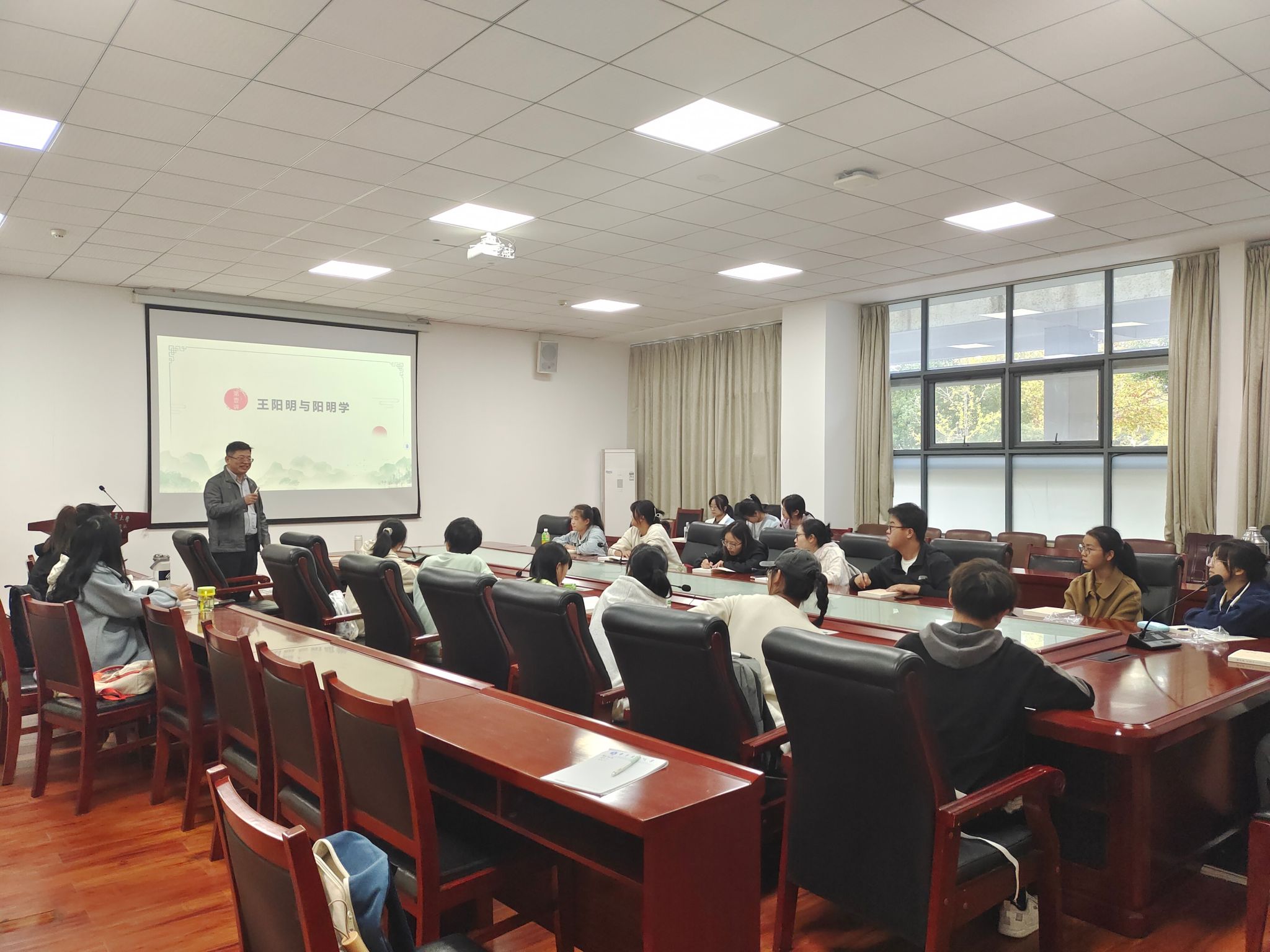 周向阳首先从宏观的角度解读了《传习录》的哲学价值,强调了其在中国思想史上的重要地位,以及在当代社会生活中的现实意义,也介绍了王阳明的生平事迹。他指出,王阳明的思想不仅是对个人修养的指导,更是对社会和谐、国家治理的有益启示。通过对《传习录》的深入研读,可以帮助青年学生树立正确的价值观,培养批判性思维,增强社会责任感。接着,周向阳结合具体的篇章,用“十讲”循序渐进,与同学们娓娓道来,并进行了生动的交流讨论。