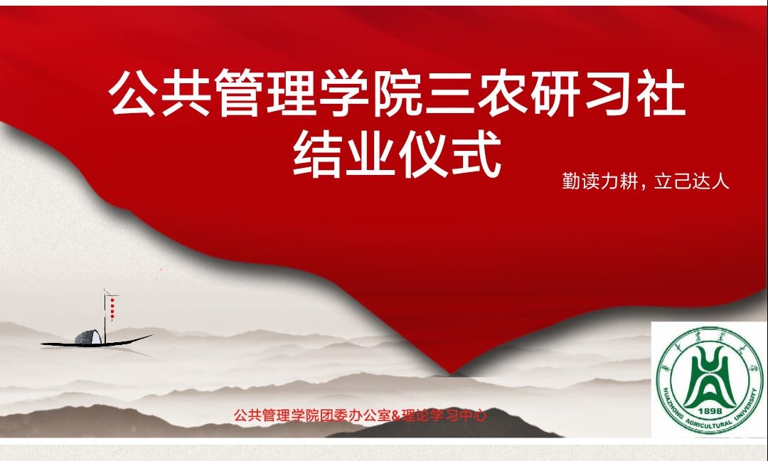 在结业仪式最后,樊华老师说到:“虽然时间十分紧迫,但你们学的很透彻。对我个人来说,这也是一个学习和收获的过程。大家参与三农研习社,是一个主动的学习过程,我感到非常欣慰,你们不仅把三农研习社做成了,还做的很有成效。你们是扎根大地的一粒种子,是撑起未来中国的一柱栋梁,希望大家都紧紧围绕在党中央周围,不断学习新思想,打好专业科学基础,立大志做大事成大人,为中华民族伟大复兴贡献公管青年的青春智慧。”