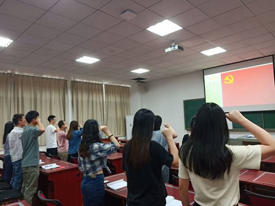 研究生第三党支部全体党员首先由高向辉同志带领全体党员重温入党誓词,不忘初心,牢记使命,坚定理想信念,与祖国同行,为人民服务,把小我的发展融入到祖国繁荣富强的大我之中。随后全体党员学习了习近平总书记给全国涉农高校的回信精神,各党员同志纷纷表示要立足自身专业,科研为民。最后利用多媒体展示了新中国70周年来发展历程及建国70年来取得的伟大成就,支部同志无不为祖国的飞速发展及日益强大感到自豪。