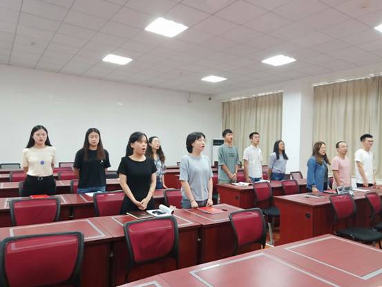 博士研究生党支部由王子洋同志带领支部全体党员贯彻学习中共中央办公厅、国务院办公厅引发的《关于隆重庆祝中华人民共和国成立70周年广泛组织开展“我和我的祖国”群众性主题宣传教育活动的通知》,并开展“不忘初心、牢记使命”主题教育集中学习研讨,深入学习习近平总书记关于“不忘初心、牢记使命”的重要论述选编。各位党员同志在研讨学习中,就自身实际发表个人看法,最后集体歌唱 《我和我祖国》为祖国献礼,全体列席党员同志用炙热嘹亮的歌声表达了对祖国的热爱之情。